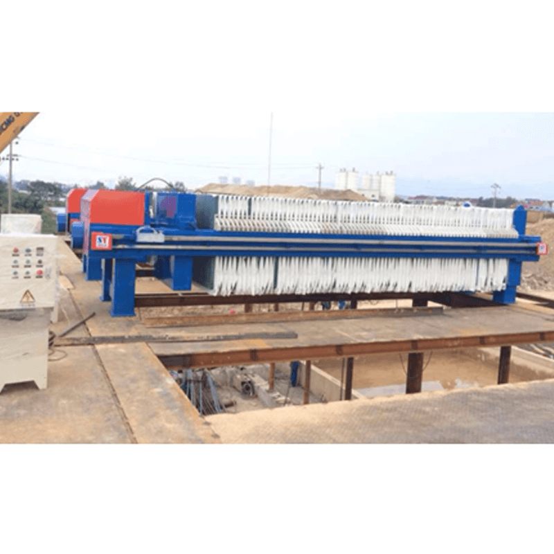 XY板框式污泥壓濾機是一種間歇性固液分離設備,是由濾板。慮框排列構成濾室,在輸料泵的壓力作用下,將料液輸送進各濾室,通過過濾介質,將固體和液體分離。